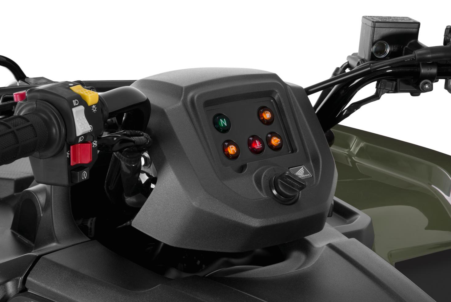 Tração selecionável – Com o TRX 420 FourTrax não existe trajeto difícil. Ele tem o recurso especial de tração selecionável que, por meio de uma alavanca lateral, permite o piloto escolher entre tração 4×2 ou 4×4, conforme a dificuldade da tarefa a ser realizada ou na transposição de terrenos mais difíceis.